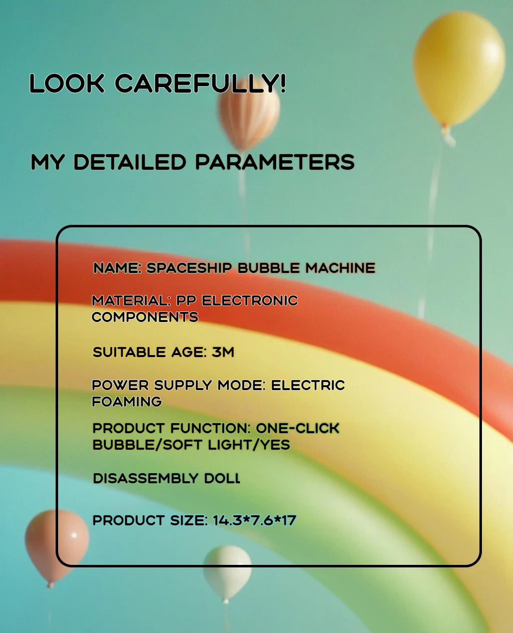 Observação: O produto não inclui líquido para bolhas de sabão.